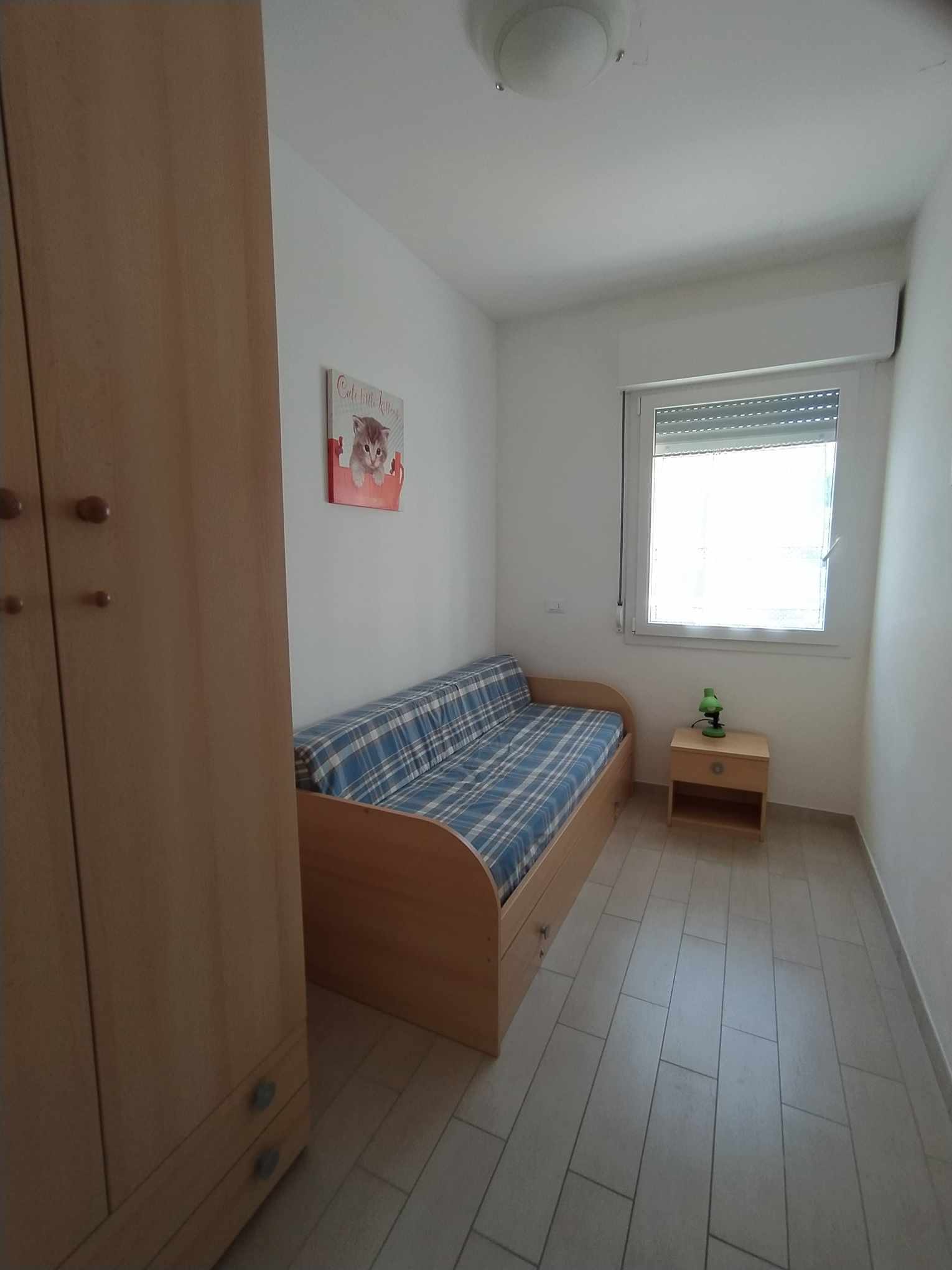 Vila Adriana Krásna malá vilka, postavená v roku 2013, pár krokov od pešej zóny a kúsok od pláže č.4 je ideálnym riešením pre tých, ktorí túžia po súkromí, ale zároveň chcú bývať v centre a blízko pláže. Vilka je umiestnená v tichej jednosmernej ulici Via Friuli cca 50 m od pešej zóny Via Udine a 100 m od pláže. Má samostatnú oplotenú záhradku - prednú, cez ktorú sa vstupuje do vilky a zadnú, kde je urobené záhradné sedenie. 4-5-lôžkový apartmán je priestranný, zariadený novým moderným nábytkom. Obývacia izba má kuchynský kút a jedálenský kút + rozkladací gauč. Sú tu ďalej dve spálne - jedna s manželskou posteľou a druhá menšia s dvomi lôžkami, z ktorým jedno je možné kvôli priestoru cez deň zasunúť pod prvé. Po rozložení sa získajú dve samostatné rovnako vysoké lôžka. K apartmánu patrí moderná kúpelňa so sprchovým boxom/umývadlom/bidetom/toaletou. Nadštandardná výbava apartmánu :