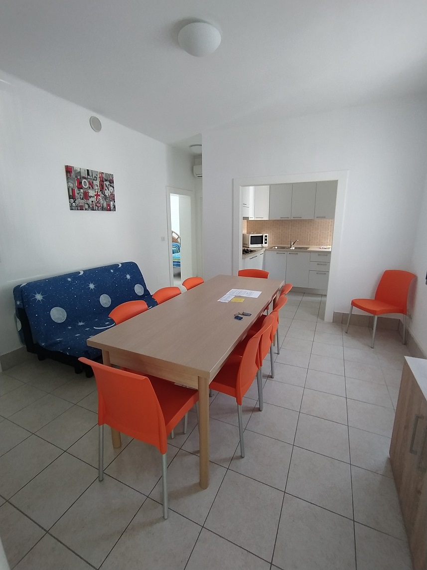 Vila Caroline Komplet zrekonštruovaná vilka s výbornou polohou pár krokov od pešej zóny a cca 200 m od pláže, v málo frekventovanej ulici s vlastnou veľkou záhradou so záhradným slnečníkom a sedením. Súkromná záhrada má cca 200 m2. 7-lôžkový apartmán má obývaciu izbu + kúpelňu + 3 spálne. Súčasťou obývacej izby je čiastočne oddelený moderný kuchynský kút + jedálenský kút + rozkladacie lôžko pre 2 osoby. Ďalej sú tu tri spálne - jedna dvojlôžková s manželskou posteľou, druhá trojlôžková s manželskou posteľou a tretím lôžkom a ešte je tu tretia malá spálňa s jedným samostatným lôžkom. Krásna moderná priestranná kúpelňa so sprchovým boxom/toaletou/umývadlom/bidetom.